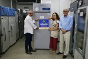 A Fundação Hemoba sediou, na manhã desta sexta-feira (28/11), a solenidade que anunciou a entrega de onze novos equipamentos de congelamento e armazenagem de plasma (blast freezers e freezers) adquiridos com investimento superior a R$ 2,2 milhões do Governo Federal, em parceria com a Hemobrás, empresa pública responsável pela produção de medicamentos derivados do sangue. Dois desses equipamentos já foram entregues e estão em funcionamento no Hemocentro Coordenador, em Salvador. Participaram do evento a superintendente estadual do Ministério da Saúde na Bahia (SEMS/BA), Joanna Paroli, o diretor-geral da Hemoba, Luiz Catto, e o subsecretário da Saúde do Estado da Bahia, Paulo Barbosa.