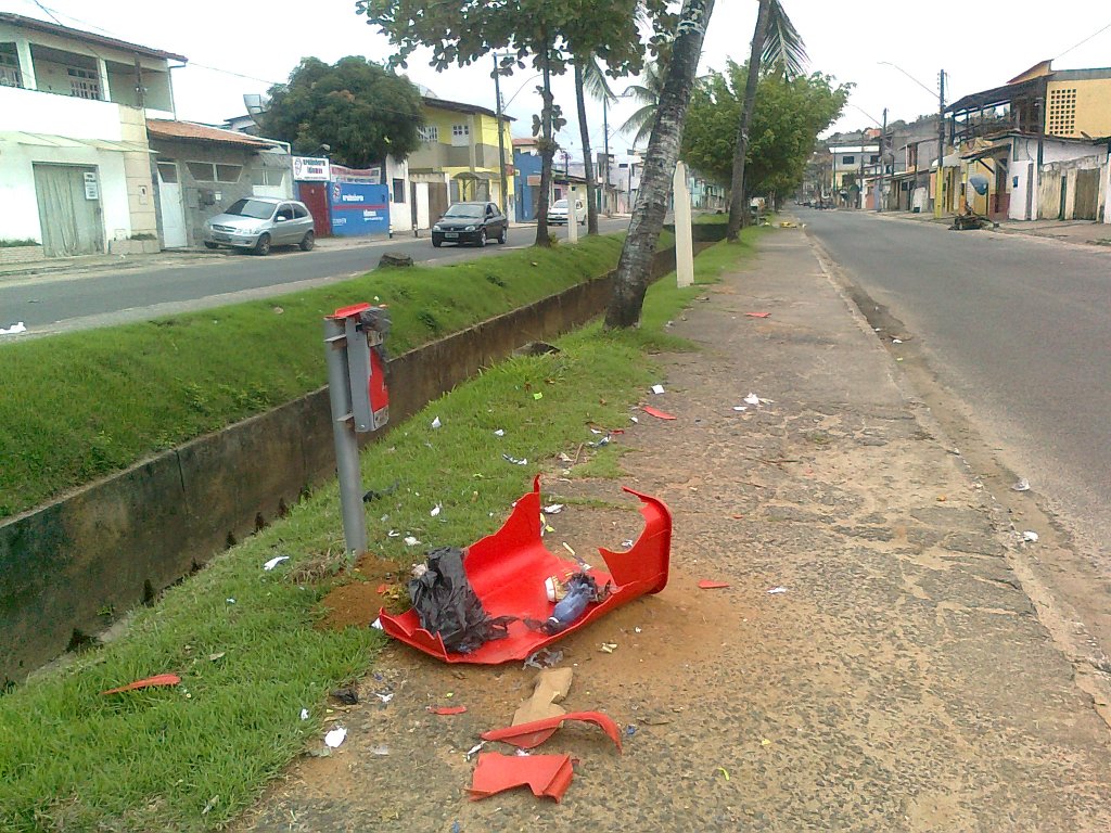 Durante a madrugada deste domingo (24) varias lixeiras foram destruídas por vândalos no bairro Hernani Sá. “Pedimos a população que denuncie à Polícia Militar sobre esses atos. Precisamos continuar a conscientização das pessoas a preservarem o patrimônio público”, explica o presidente da associação de moradores, Odailson Aranha.