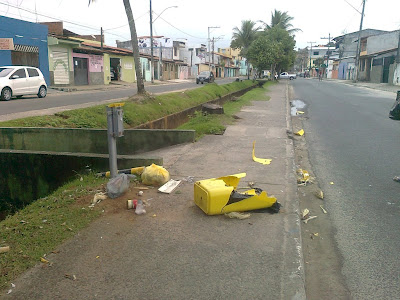 Vandalismo destrói lixeiras no Hernani Sá