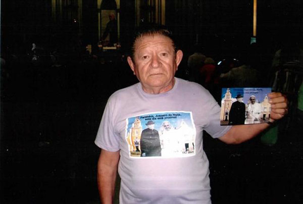 JOSÉ LEITE distribuindo impressos com a foto do PADRE CÍCERO e do PAPA FRANCISCO na CATEDRAL DA SÉ em SÃO PAULO.