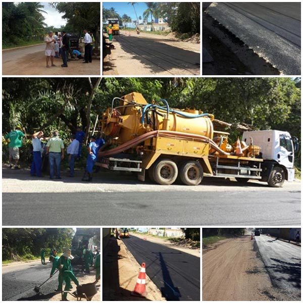 A Prefeitura mandou tampar a buraqueira e está cobrindo a rua com uma manta asfáltica além de estar trabalhando em conjunto com a Embasa que veio desobstruir os canos de saída de água pluvial.