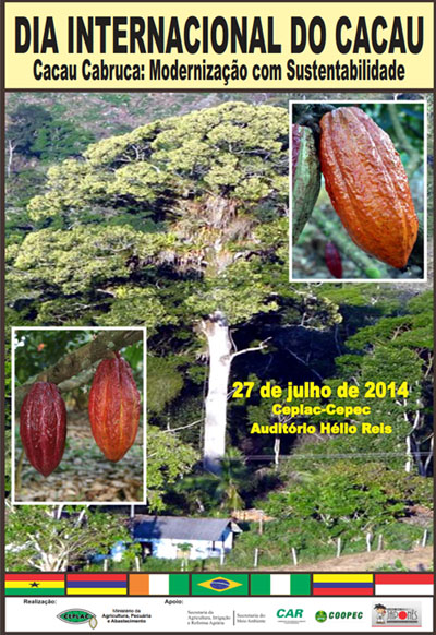 No próximo dia 27, a Comissão Executiva do Plano da Lavoura Cacaueira (Ceplac) vai comemorar o Dia Internacional do Cacau. O evento será realizado no Auditório da Ceplac, no quilômetro 22 da rodovia Ilhéus/Itabuna, com o tema Cacau Cabruca: Modernização com Sustentabilidade. A ocasião, comemorada por todos os países produtores, ocorre a cada primeiro domingo de junho. Mas esse ano a festividade no Brasil foi adiada para que pudesse celebrar o maior avanço da cacauicultura baiana nos últimos tempos: o decreto 15.180, de 2 de junho de 2014.