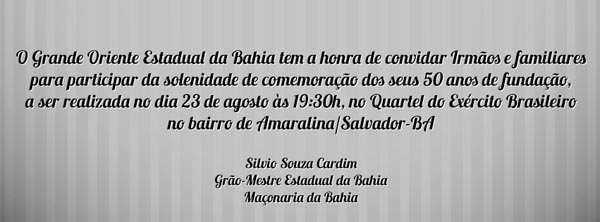 Os Irmãos deste Estado representado pelo Grande Oriente Estadual da Bahia o cumprimenta e deseja saúde, paz e sucesso sempre.