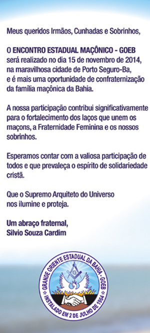 Revermos tantos Irmãos, abraçarmo-nos e dizer quando cada um é importante para nós, para a Grande Loja Maçônica do Estado da Bahia, para a Ordem teve uma grande significação para mim.