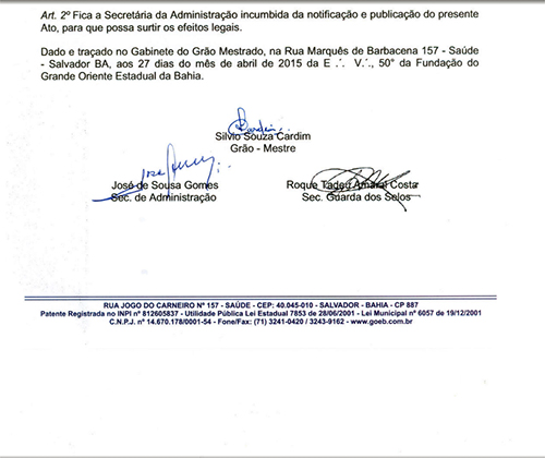 Na presidência da Assembleia Geral está o empresário Jose Leite De Souza tendo como secretários – Julio Adolpho Argolo e Rodolpho Chicourel Albagli. Os membros do Conselho Fiscal são Nilton Cardoso da Cruz, Orlando Souza Oliveira, e Alberto Chicourel Albagli, efetivos. Josué Marcelino De Souza , Antonio Augusto Costa e Paulo Cézar Sanjuan Ganen, suplentes.