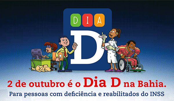 O empresariado baiano interessado em contratar Pessoas com Deficiência (PcD) conta com uma boa oportunidade para encontrar a mão de obra pretendida, no dia 02 de outubro. Trata-se do Dia D, evento no qual diversos parceiros se unirão ao SineBahia em prol dos trabalhadores com deficiência e beneficiários reabilitados do INSS que almejam um lugar no mercado de trabalho, e que, em 2015, oferece às empresas a possibilidade de compor seu quadro funcional com profissionais capacitados.