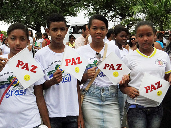 Encerrando a semana de atividades da Campanha “Ilhéus sem violência é bem melhor”, foi realizada na manhã deste sábado (26) uma grande caminhada em prol da paz e contra a violência dentro e fora do ambiente escolar. Milhares de alunos, pais, professores, policiais militares e outros representantes da sociedade civil caminharam pelo centro de Ilhéus levando mensagens de paz.