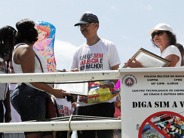 A caminhada saiu da Avenida Soares Lopes, passando pelas ruas principais do centro ilheense e seguiu até a Praça da Catedral de São Sebastião, onde houve a premiação do concurso de redação e desenho, que envolveu escolas publicas e particulares, com alunos desde a educação infantil ao Ensino Médio.