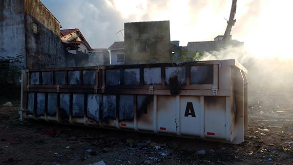 O equipamento servia para depósito de material descartável e evitava a formação de ponto viciado de entulho nas proximidades do Caic Darcy Ribeiro, no bairro Hernani Sá
