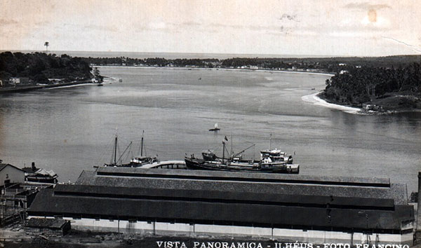 FOTOS D J. DIAS, 1945, PORTO NO CENTRO DE ILHÉUS,NAVIOS MERCANTES. AO FUNDO LO PONTAL AINDA VILA DE PESCADORES.