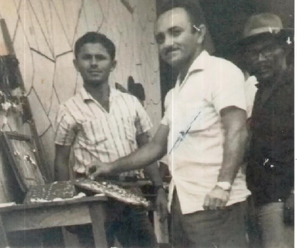JOSÉ LEITE DA SILVA (camisa branca), Tio de JOSÉ LEITE e foi quem o incentivou a viajar do CEARÁ para a BAHIA (ITABUNA-ILHÉUS) em 1960. Na foto, aparece um amigo. Observe também a TABULETA DE OURO exposta.
