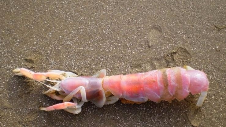 Já algumas vezes tinha visto um casal, ela com algumas vasilhas na mão e ele com tipo uma bomba de sucção feita de tubos plásticos. Eles andavam bem pertinho da água e com esta bomba ele aspirava água/areia, espalhava numa área mais seca e aí eles catavam alguma coisa que eu julguei ser tatuzinhos. Nos meus tempos de criança já peguei muito tatuzinho nesta praia.