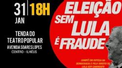 No próximo dia 31 de Janeiro, às 18h, na Tenda do Teatro Popular de Ilhéus, na avenida Soares Lopes, partidos, sindicatos e movimentos sociais organizados no município, irão lançar o Comitê em Defesa da Democracia e Pelo Direito de Lula ser Candidato. As mobilizações foram definidas durante reunião na sede no Sindicato dos Bancários.