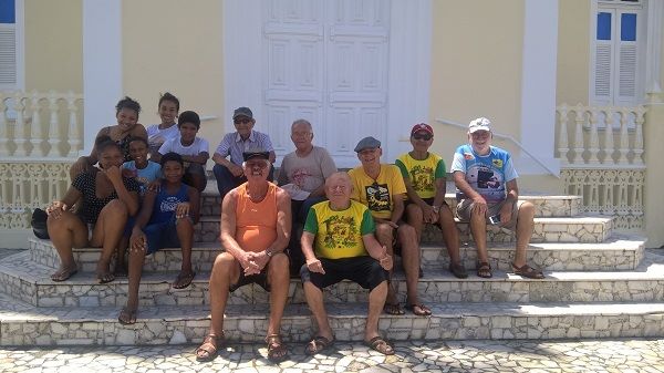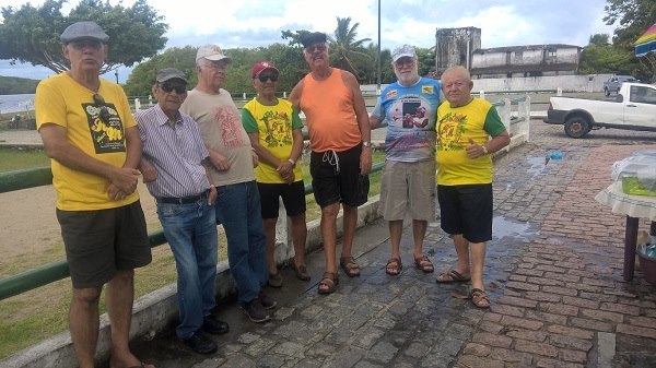 A terceira parada foi no Cais do Porto Antigo na BAIA DO RIO PARDO. Na foto: O GRUPO RM (ROLA MURCHA) sendo recebido pelos anfitriões VALMIR ROSÁRIO (o 2º da direita para a esquerda) e por GILBERTO ALVES OLIVEIRA (GILBERTÃO) o 3º da direita para a esquerda.
