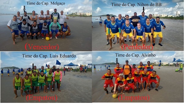 A Associação dos Veteranos de Esporte Praiano –AVEP, entidade quase centenária de “babas de praia” em atividade de Ilhéus, realizou domingo(15) pela manhã a 12ª rodada desta referida modalidade esportiva de sua Temporada 2018, como de praxe, na praia da Avenida Soares Lopes(bem defronte do espaço cultural Tenda Teatro Popular de Ilhéus). No Campo Grimaldo houve empate de 3 a 3 entre as equipes dos capitães Alvinho e Luís Eduardo (gols de Alex de Moises, Wendell da Autoescola e Paulo Melo para a do primeiro capitão e Paulinho da AFC, Ralio da Contabilidade e Ismar Landgol para a do segundo). No Campo Martial venceu o time comandado pelo Capitão Melgaço ao do dirigido pelo Capitão Nilton do BB pelo placar de 5 a 3, marcando Tabosa do Ofertão(2), Larocca Delega(2) e Duda Pantera para o vencedor e Silvio Reis, Alan Firula e Paulo Melo para o perdedor. Os “babas’ foram apitados por Antônio Cesar Tavares (Campo Grimaldo) e Ronivon Pereira Dias sem nenhum tiroteio em nível do Rio de Janeiro em cima da dupla arbitral por parte dos participantes. Ambos pertencem ao quadro de árbitros da Liga Ilheense de Futebol. Receberam Cartão Amarelo: Zezinho da Baixa Fria e Luís Humberto; Cartão Azul: Adauto Negocinho e Luís Eduardo