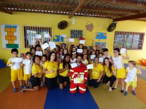 Para celebrar o Dia do Estudante, a Escola & Brinquedoteca A Casa Amarela preparou uma manhã de atividades especiais para as crianças do Ensino Fundamental I. No último sábado (11), os alunos tiveram aula sobre prevenção de acidentes domésticos e comportamento em situações de emergência. Ao final, todos receberam certificado de Brigadista Mirim das mãos do instrutor Ivan Carrasco, profissional que também capacitou a equipe da instituição de ensino ilheense no curso de Brigadista de Emergência.