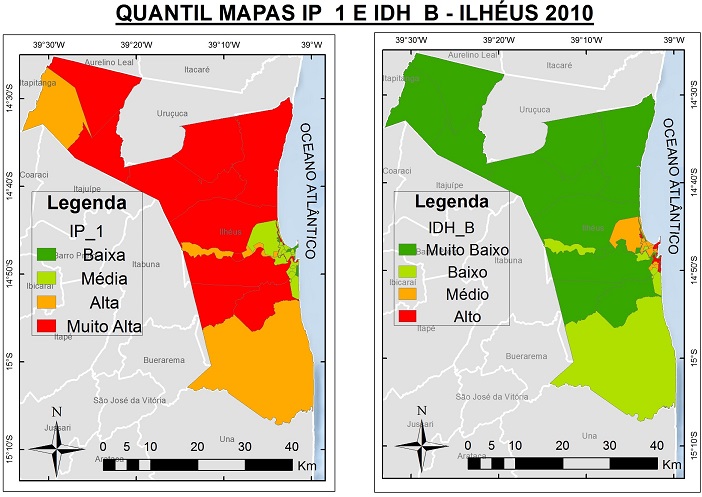 O estudo realizado pelos pesquisadores Ricardo Sá Barreto, Eli Izidro e Ícaro Carvalho teve como objeto de pesquisa bairros e distritos do município de Ilhéus. A partir dos resultados apresentados, é possível fazer um comparativo entre a pontuação obtida pelas localidades em relação aos países que constam no relatório do Programa das Nações Unidas para o Desenvolvimento Humano (PNUD). Assim, 22 localidades de Ilhéus foram relacionadas a países com pontuações equivalentes. Jardim Atlântico (0,914), primeiro do ranking, tem como equivalente a Bélgica, por exemplo. Por ordem, no top 5 dos bairros estão: Boa Vista (0,863) (Emirados Árabes Unidos), Cidade Nova (0,833) (Croácia), São Sebastião (0,816) (Federação Russa) e São Francisco (811) (Romênia).