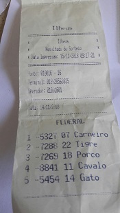 SEGUNDO O MESMO, NESTA DATA NÃO HOUVE SORTEIO PELA FEDERAL, OCORRENDO NO DIA 15/11/2018 E QUE ASSIM SENDO O SENHOR JORGE TERIA GANHO NO 1°PRÊMIO.