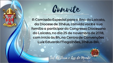 O Ano do Laicato, instituído pela Conferência Nacional dos Bispos do Brasil (CNBB), celebrado desde a solenidade de Cristo Rei de 2017, encerrar-se na mesma solenidade, em 2018. A diocese de Ilhéus vai realizar no dia 25 de novembro o Congresso Diocesano do Laicato. O evento encerra as atividades do Ano Nacional do Laicato e tem início previsto para às 8 horas, no Centro de Convenções Luís Eduardo Magalhães, na Av. Soares Lopes, Cidade Nova.