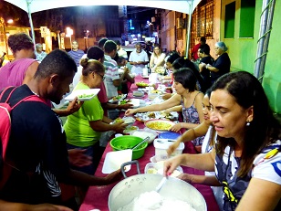 A segunda edição da Ceia Natalina Solidária demonstrou, mais uma vez, como o bem comum é capaz de reunir pessoas de várias crenças e ideologias. Na noite da última quinta-feira (20) voluntários serviram, aproximadamente, 100 refeições para pessoas em situação de rua do Centro de Ilhéus. O evento aconteceu sob toldos e mesas montados na Praça J.J. Seabra, em frente à Câmara de Vereadores.