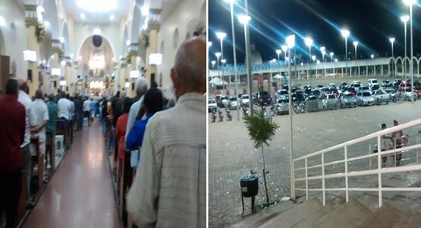 JOSÉ LEITE assistiu a MISSA das 5 horas da manhã na BASÍLICA MENOR DE NOSSA SENHORA DAS DORES. Interessante, de madrugada e a BASÍLICA LOTADA! Na outra foto, o grande LARGO de frente a BASÍLICA com muitos carros chegando, onde seus proprietários estacionavam para assistirem a celebração da MISSA.