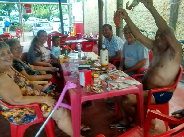 Terça Feira de CARNAVAL com muita alegria. Almoçando na CABANA DO VIVALDO, no CURURUPE com dois amigos de longas datas, Cel. GERALDO DIAS DE ANDRADE e Cel. JAMIL RODRIGUES, todos os dois acompanhados das suas respectivas Esposas, MARIA WILMA e MARIÉLIA RODRIGUES.