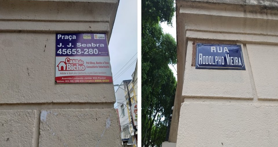Empresas retiram Placas com nomes de Ruas que estão no local a mais de 80 anos para serem substituídas por outras com comerciais. Foi o que aconteceu com a Placa acima com o nome de RUA RODOLPHO VIEIRA (com PH). E jogaram a Placa no Lixo. Por sorte, JOSÉ LEITE, passando no local, levou a Placa e mandou restaurar a mesma. Esta semana, vendo que a Placa que estava no lugar, tinha desaparecido, mandou colocar a Placa antiga que agora, se encontra no local. A LUTA É GRANDE!