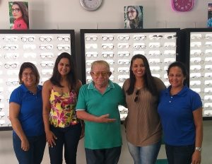 Visita da amiga EVA MAIA (Blusa marrom) à ÓTICA SAFIRA. Na foto, da esquerda para a direita: LUCIENE, THAIANE, JOSÉ LEITE, EVA e ÂNGELA.