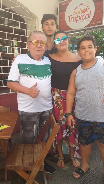 JOSÉ LEITE sentindo-se feliz ao lado da sobrinha ADRIANA RESENDE e seus filhos CAIO e FELIPE.