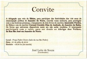 No último sábado (13-07-2019) a visita foi do Vice Prefeito de ILHÉUS JOSÉ NAZAL, que veio comunicar que, por motivo de força maior, não poderá nos acompanhar na viagem. Fica para a próxima, amigo.
