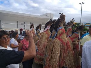 Na foto acima, grupo de ÍNDIOS com seus trajes típicos, participando da MISSA em homenagem ao PADRE CÍCERO. (Foto: 20-07-2019).