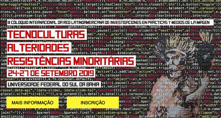 Entre os dias 24 e 27 de setembro, acontece o IIIColóquio Internacional da Red Latinoamericana de Investigaciones en Prácticas y Medios de la Image. Já realizado nas cidades do Rio de Janeiro e Santiago do Chile, nessa 3ª edição, ele ocorrerá no Teatro Municipal da cidade de Ilhéus, com o tema: Tecnoculturas, Alteridades e Resistências Minoritárias. Organizado pelo Grupo de Pesquisas Avançadas em Materialidades, Ambiências eTecnologias, da Universidade Federal do Sul da Bahia (UFSB), liderado pelo professor Guilherme Foscolo, o evento propõe pensar as relações entre tecnologia e subjetividades na cultura contemporânea.