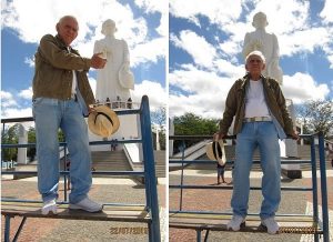 Na viagem para JUAZEIRO DO NORTE, os Ilheenses esperavam participar da inauguração da ESTÁTUA DE SEU LUNGA, mas por motivo de força maior, não aconteceu. Temos certeza que no Governo Municipal de JUAZEIRO DO NORTE, tendo a frente o dinâmico Prefeito ARNON BEZERRA, a ESTÁTUA DE SEU LUNGA poderá ser inaugurada ainda esse ano! Na foto da esquerda: JOSÉ LEITE e SEU LUNGA (ano de 2012). Na foto da direita: SEU LUNGA ladeado pelo Coronel GERALDO DIAS (JUAZEIRO DA BAHIA) e GIVALDO SOBRINHO de ILHÉUS (ano de 2013).