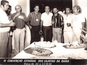 Confraternização entre Lojistas na Residência do Presidente do CDL, na época, MOISÉS BOHANA. Na foto, da esquerda para a direita: o saudoso ANTÔNIO DRUBI (JUAZEIRO DA BAHIA), o saudoso ISRAEL PORTNOI (Saudosa Lojas Ipê), NELSON BRANDÃO (Na época, Presidente da FEDERAÇÃO DOS LOJISTAS DA BAHIA), o saudoso MILTON VELOSO (DOLL MODAS), o saudoso MOISÉS BOHANA (BOHANA E CIA), AFONSO AMORA (conterrâneo de JOSÉ LEITE, e na época, morava em JUAZEIRO- BA) e JOSÉ LEITE DE SOUZA (com um salgadinho na boca).