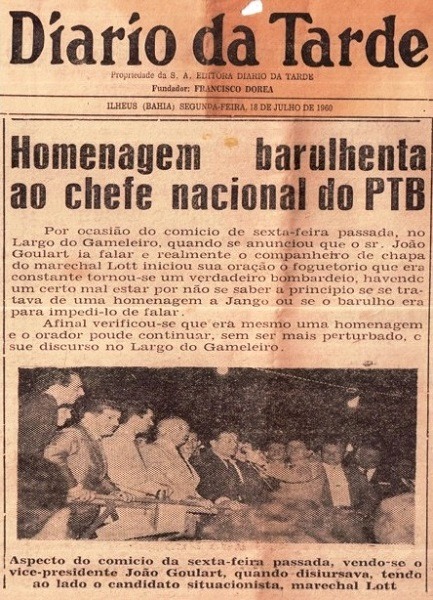 Aconteceu há 59 anos atrás, no “LARGO DA GAMELEIRA”, entre a PRAÇA CAIRÚ e a RUA SETE DE SETEMBRO. Edição do JORNAL DIÁRIO DA TARDE de 18 de julho de 1960.