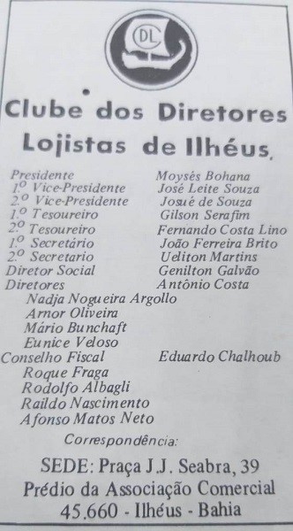 Naquela noite histórica que transformaria o Comércio de ILHÉUS para melhor, foi escolhida a Nova Diretoria, sendo nomeado por aclamação o Lojista MOISÉS BOHANA como seu primeiro Presidente, que em seguida anunciou os Nomes para Compor a NOVA DIRETORIA. Com muito orgulho e emoção, JOSÉ LEITE DE SOUZA foi escolhido como Diretor de Relações Públicas. OBRIGADO AMIGO E COMPANHEIRO MOISÉS BOHANA e outros companheiros que já se foram, vocês plantaram uma semente que continua dando bons frutos 45 anos depois. PARABÉNS A DIRETORIA ATUAL, A TODOS ASSOCIADOS E AOS FUNCIONÁRIOS DO CDL DE ILHÉUS!