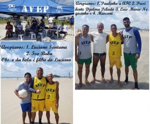 A entidade de ‘babas de praia’ quase centenária de Ilhéus, a Associação dos Veteranos de Esporte Praiano –AVEP, realizou nesse domingo(13) pela manhã sua 18ª rodada da referida modalidade esportiva na praia como de praxe, da Av. Soares Lopes(imediações do espaço cultural Tenda Teatro Popular de Ilhéus). No baba do Campo Grimaldo a equipe dirigida pelo Capitão Alex de Moises venceu a da comandada pelo Capitão Crispa da Galera do Fla pelo escore de 3 a 0, marcando Souza da Polícia, Juvenal e o próprio Alex de Moises. No Campo Martial os times dos capitães Djalma Peludo e Renatinho dos Leais empataram de 1 a 1. Conferiram Luciano Santana para o primeiro e Waldemar da Codeba(o popular ‘Runior’, jogando de centroavante), para o segundo. Os juízes Edson Miranda de Souza(Campo Grimaldo) e Wilson Salviano marcaram os babas sem serem muito importunados pelos partícipes. Levaram Cartão Amarelo: Luciano Santana e Correia do HSBC. O coordenador dos babas, também chamado de Diretor de Baba do Dia, foi o atacante-ligeiro Ismar Landgol.