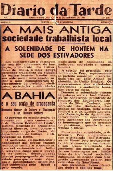 Mais uma Sociedade Trabalhista de ILHÉUS comemorou 100 ANOS no último dia 14 de Setembro de 2020. O SINDICATO DOS ESTIVADORES DE ILHÉUS já foi e continua sendo um dos mais importantes na área Portuária do BRASIL.