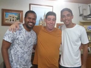 Na foto, o famoso humorista ANDRÉ LUCAS, que em ILHÉUS só se hospeda no HOTEL CACAU D’OURO, ladeado pelos recepcionistas do hotel, CARLOS RAMALHO e EDMILSON SILVA.