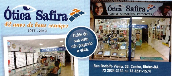 Nessa última terça feira (17-12-2019), uma das Lojas da ORGANIZAÇÃO JOSÉ LEITE DE SOUZA, completou 42 anos de existência. Trata-se da ÓTICA SAFIRA, fundada em 17 de dezembro de 1977. Foi a primeira Loja de ILHÉUS com Balcões e Vitrines com Vidro Temperado. Em 1978, foi a ganhadora do Troféu como a Loja mais Bonita da Cidade. A ÓTICA SAFIRA É A SEGUNDA ÓTICA MAIS ANTIGA DE ILHÉUS.