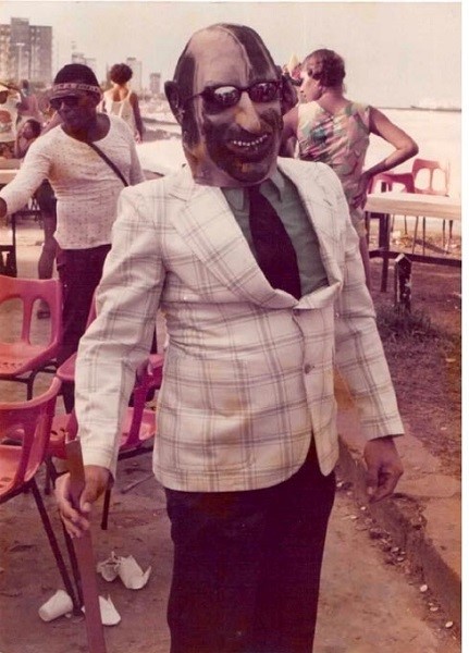 MASCARADO NO OBELISCO DA AVENIDA 2 DE JULHO. QUEM É ESSE CARA? ESSE CARA SOU EU. Na década de 1970 JOSÉ LEITE foi o primeiro a lançar as MÁSCARAS DE BORRACHA em ILHÉUS e ITABUNA. Obs: JOSÉ LEITE naquela época, brincava o carnaval de rua na Avenida Soares Lopes em ILHÉUS e na Avenida Cinquentenário em ITABUNA. Mascarado, chamava muita atenção.