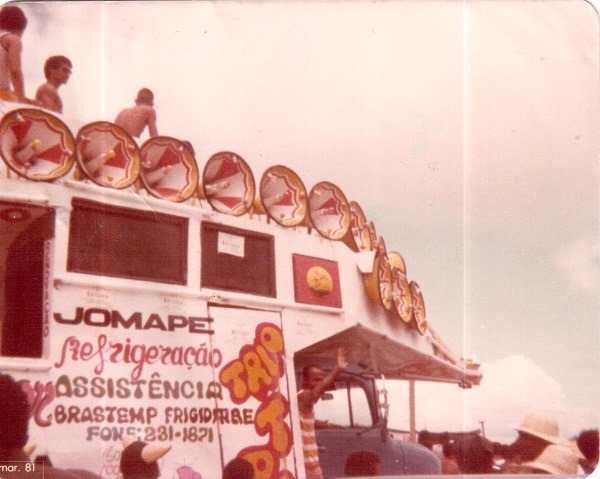 Uma história que não me canso de contar. ADELSON, (dono do saudoso TRIO ELÉTRICO TAMOIO) num dia de CARNAVAL, o TRIO tocando na Avenida Soares Lopes começou a dar CURTO CIRCUITO saindo pequenas labaredas de fogo e algumas pessoas falaram: “ADELSON, O TRIO ESTÁ PEGANDO FOGO!” e ADELSON na boleia do TRIO agradecia pensando que eram elogios. HISTÓRIAS DO CARNAVAL DE ILHÉUS. Na foto, ADELSON na boleia do TRIO TAMOIO saudando as pessoas. (Foto: década de 1970).