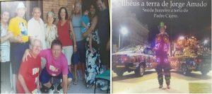 No ano de 2012, mais uma excursão, só que dessa vez, foi de avião. Na 1ª foto: Uma parte da delegação de ILHÉUS na residência do Dr. GERALDO MENEZES BARBOSA. Na 2ª foto: Presença de PIRILAMPO com seus 2 carros iluminados em JUAZEIRO DO NORTE, que viajou de ILHÉUS e se incorporou à Delegação.