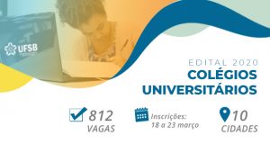 A Universidade Federal do Sul da Bahia (UFSB) está com as inscrições abertas para o Processo Seletivo para ingresso de estudantes através da Rede Anísio Teixeira de Colégios Universitários (CUNIs). Os Colégios Universitários são parte integrante da Universidade. São salas da UFSB que funcionam em instalações da rede estadual de ensino médio, por meio de um convênio assinado com o Governo do Estado da Bahia.
