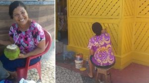 Na foto acima, MARIA CONCEIÇÃO, mais conhecida como “DEL FLORES”, chega no trabalho 6h30min e sai 20h30min todos os dias, domingos e férias, com vírus ou sem. E quando tem uma folga, ela não para, vai pintar sua Banca.