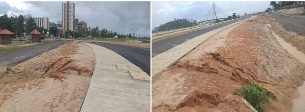 O bom seria que ENGENHEIROS DO GOVERNO DO ESTADO viessem fiscalizar. JOSÉ LEITE não entende muito do assunto, mas acha que todo esse trajeto com barro teria de ser recapeado com cimento e não com GRAMA.