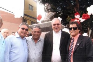 Amigos de ILHÉUS ao lado do BUSTO de Dr. FLORO BARTOLOMEU DA COSTA, inaugurado em 23-07-2011. Da esquerda para direita: O Deputado Estadual ROSEMBERG PINTO, SALDANHA, DOM MAURO MONTAGNOLI (Bispo da Diocese de ILHÉUS) e NILTON LIMA, na época, Prefeito de ILHÉUS.