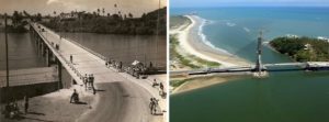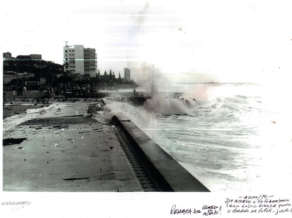 Na década de 1960, quando as correntes Marítimas eram fortes, observe na foto acima, onde as ONDAS DO MAR chegavam na muralha ao lado da CATEDRAL SÃO SEBASTIÃO até o OBELISCO. Se você estivesse no passeio, se molhava.