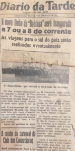 Na década de 1940 o principal transporte do Ilheense para viajar para o Norte ou para o Sul era o de CABOTAGEM, ou seja, PELO MAR. O Transporte Marítimo também era o principal para a Exportação de Cacau para o Exterior e a Importação de Mercadorias para o Comércio Local e da Região Sul da BAHIA. Na foto, o VAPOR CANAVIEIRAS da CIA DE NAVEGAÇÃO DA BAHIA. Leia a matéria acima publicada no DIÁRIO DA TARDE, edição de 03-03-1941. (Clique na foto para ampliar).
