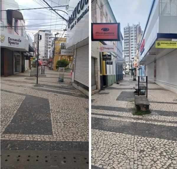 Aconteceu no último sábado (09-05-2020) véspera do DIA DAS MÃES. O Comércio de ILHÉUS totalmente fechado no horário das 13h00min, quando o fluxo de pessoas estaria mais agitado para escolherem o Presente que iriam comprar para suas Mãezinhas! Nas fotos acima aparece a Rua Jorge Amado, uma das mais movimentadas do Comércio de ILHÉUS, totalmente vazia, Lojas fechadas e sem transeuntes.